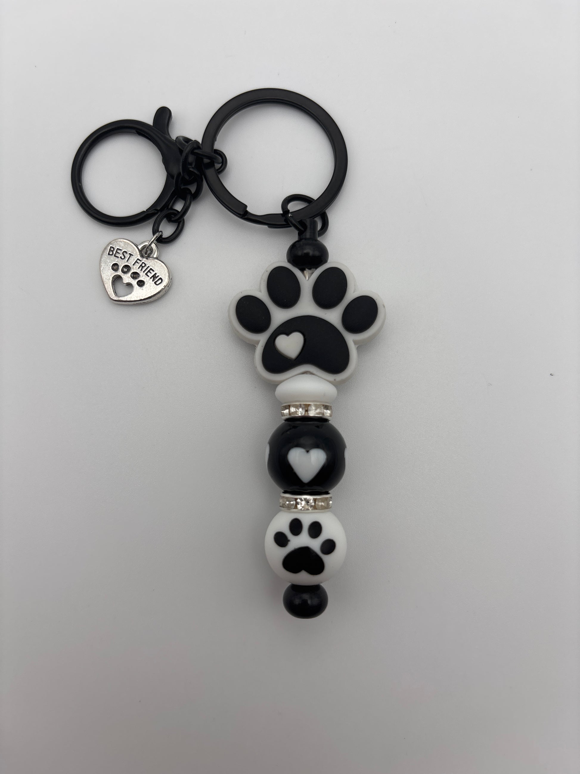 Heart & Paw Print Keychain with Best Friend Charm and Heart Print Bead