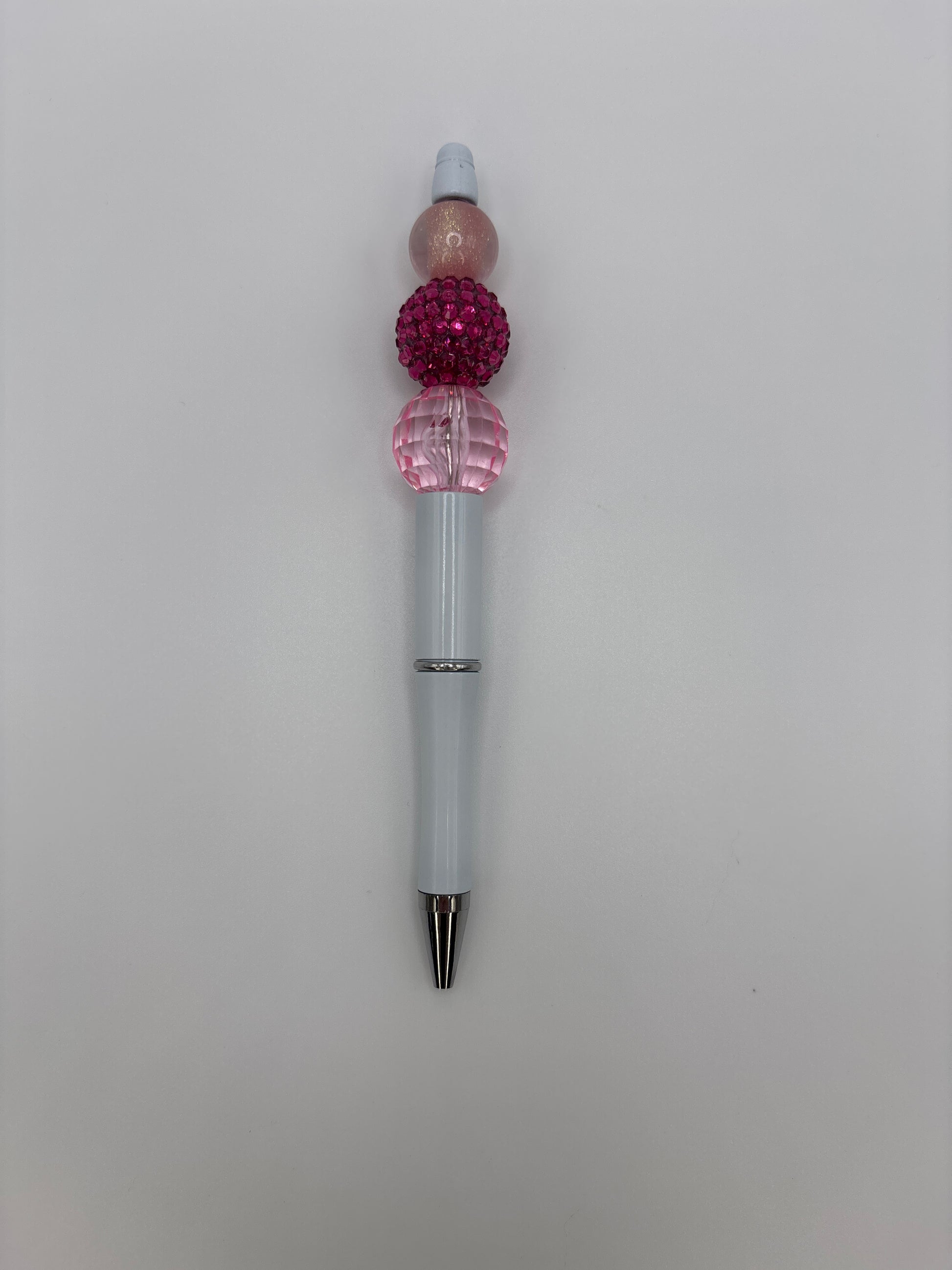 Hot Pink Sparkle Beaded Pen - Refillable White Barrel