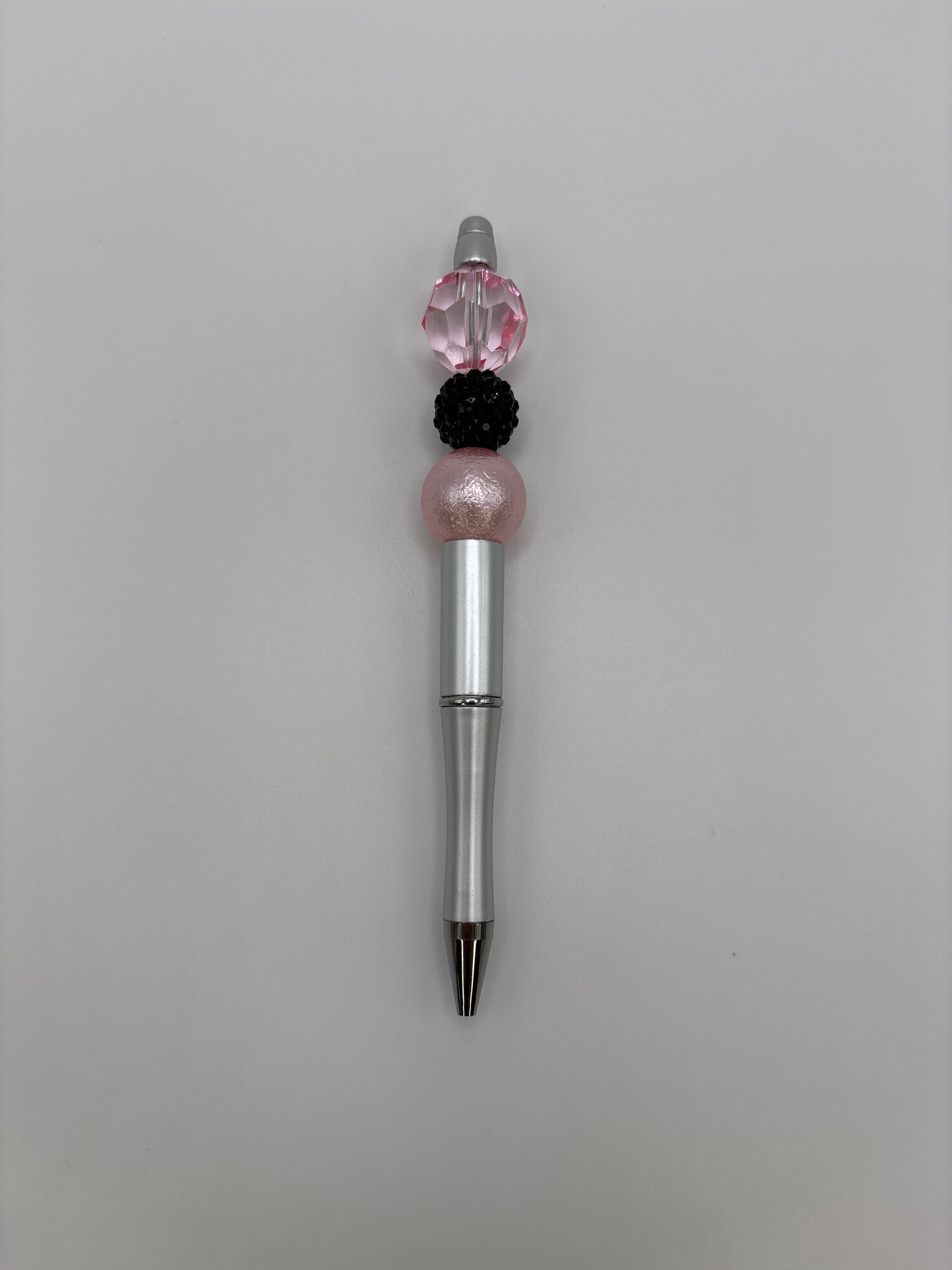 Pink Luxe Beaded Pen - Black & Pink Sparkle Pen - Silver Refillable Barrel Elegant Pen