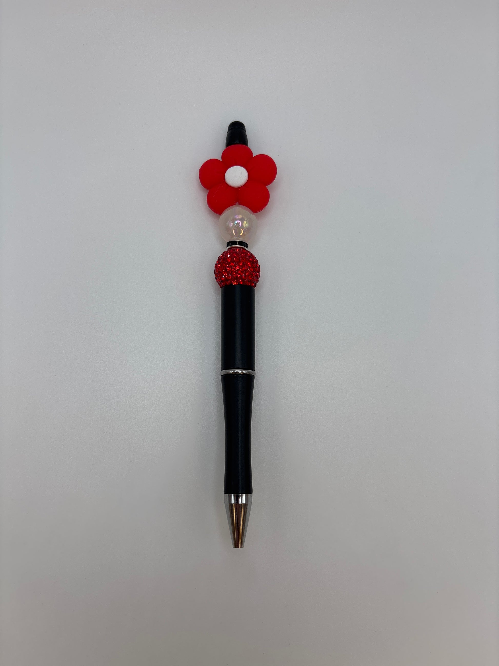 Add a pop of charm to your desk with this handmade red daisy flower sparkle pen! πΈ Featuring a soft red flower topper, shimmering rhinestone bead, and sleek black barrel, this pen writes smoothly and looks beautiful while you work or journal. Perfect as a gift for teachers, coworkers, or pen lovers β itβs stylish, unique, and made with love.Β