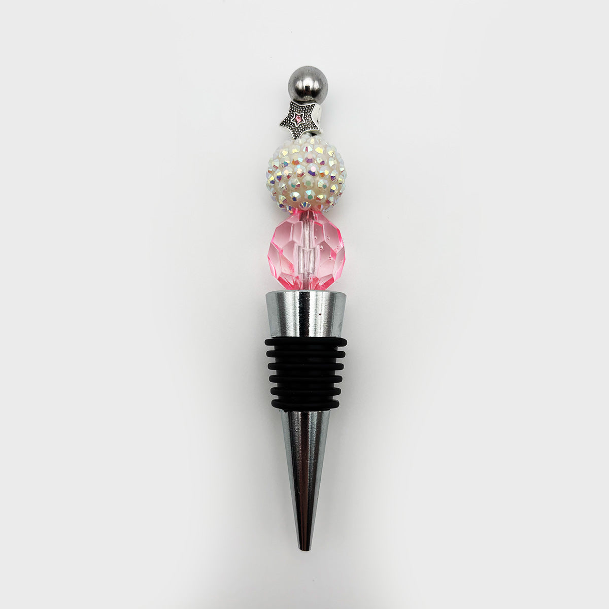 Elevate your wine nights with the Star White Sparkle Beaded Stopper, featuring a dazzling white rhinestone bead, silver star charm, and pink crystal accent. A glamorous and functional piece for any wine lover.
