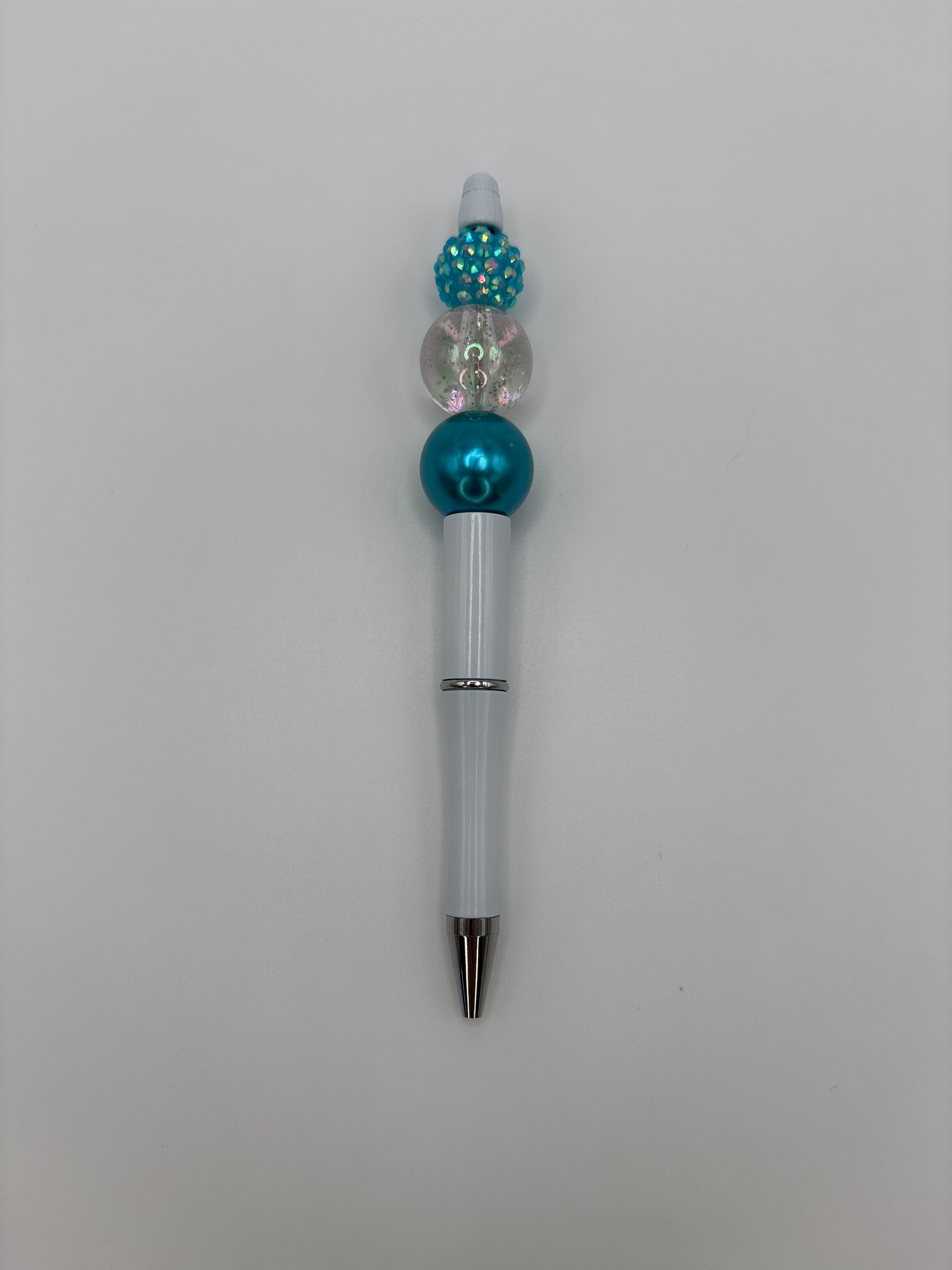 Teal Sparkle Beaded Pen with Shimmer & Glitter Beads with Silver Barrel